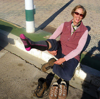 Our first break was on the flat area with views towards the coast and Benidorm. Wendy and Jackie are still chatting.